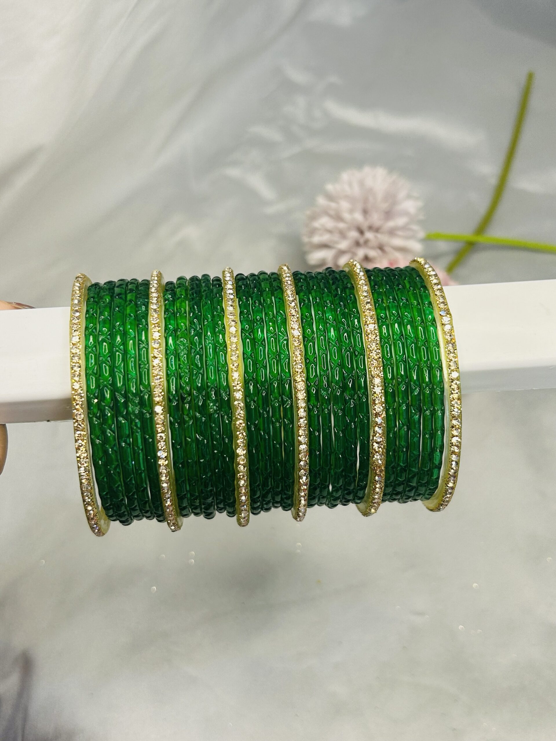 24 classic green bangles – symbolizing growth, harmony, and tradition